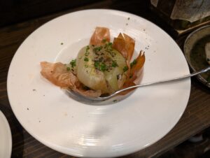 「玉ねぎトロトロ焼き」は食材の甘味が焼かれることで引き出され、ちょっぴりとかかったスパイスもいい仕事をしていました。