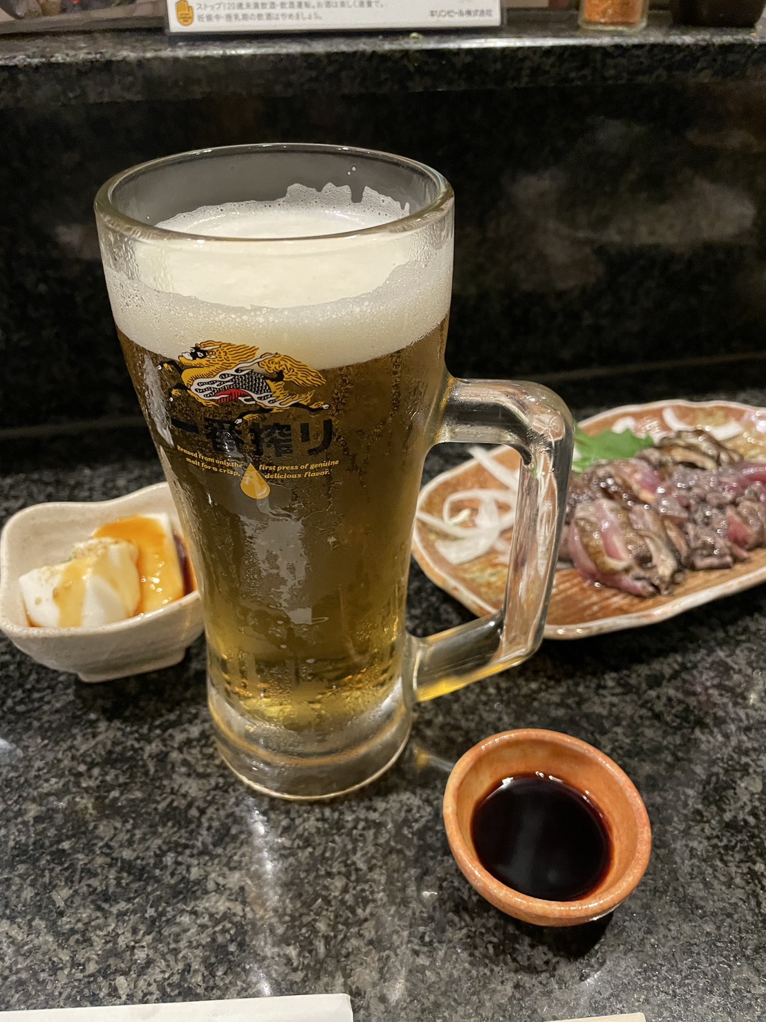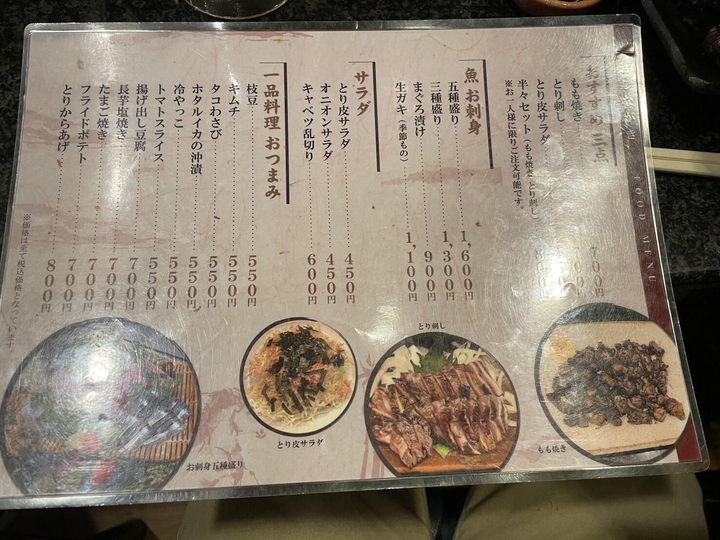 毎回頼んでしまう定番メニュー、「もも焼き」と「鳥刺し」。もも焼きは、脂の旨味と炭火で焼かれた香ばしさが絶妙で、塩味とのバランスが抜群。生ビールと合わせて楽しむのが至福のひとときです。鳥刺しも新鮮で、まるで鶏肉そのものの美味しさを感じることができ、食べ応えも満点。