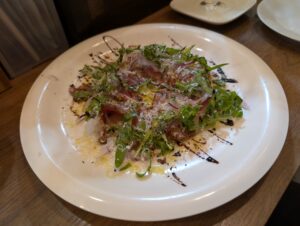 その日のお魚を使ったカルパッチョ、この日は「ハマフエフキ」でした。