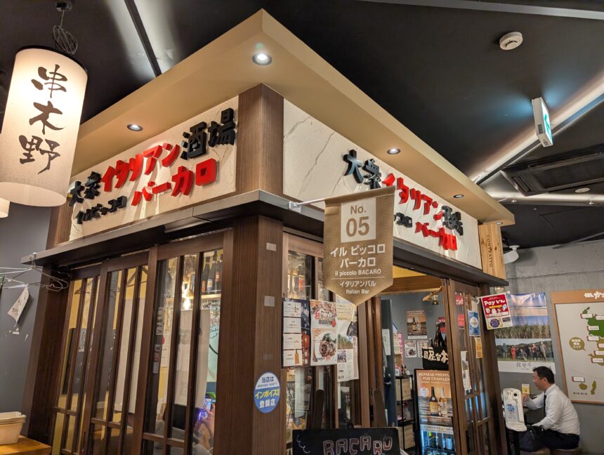 鹿児島中央駅バスターミナル地下の「かごっまふるさと屋台村」にあるイタリアン酒場「イルピッコロバーカロ」を訪れました。カジュアルに本格イタリアンを楽しめるお店で、カウンター中心の店内は活気がありつつも落ち着いた雰囲気。ひとり飲みはもちろん、友人同士やカップルでも立ち寄りやすい空間です。