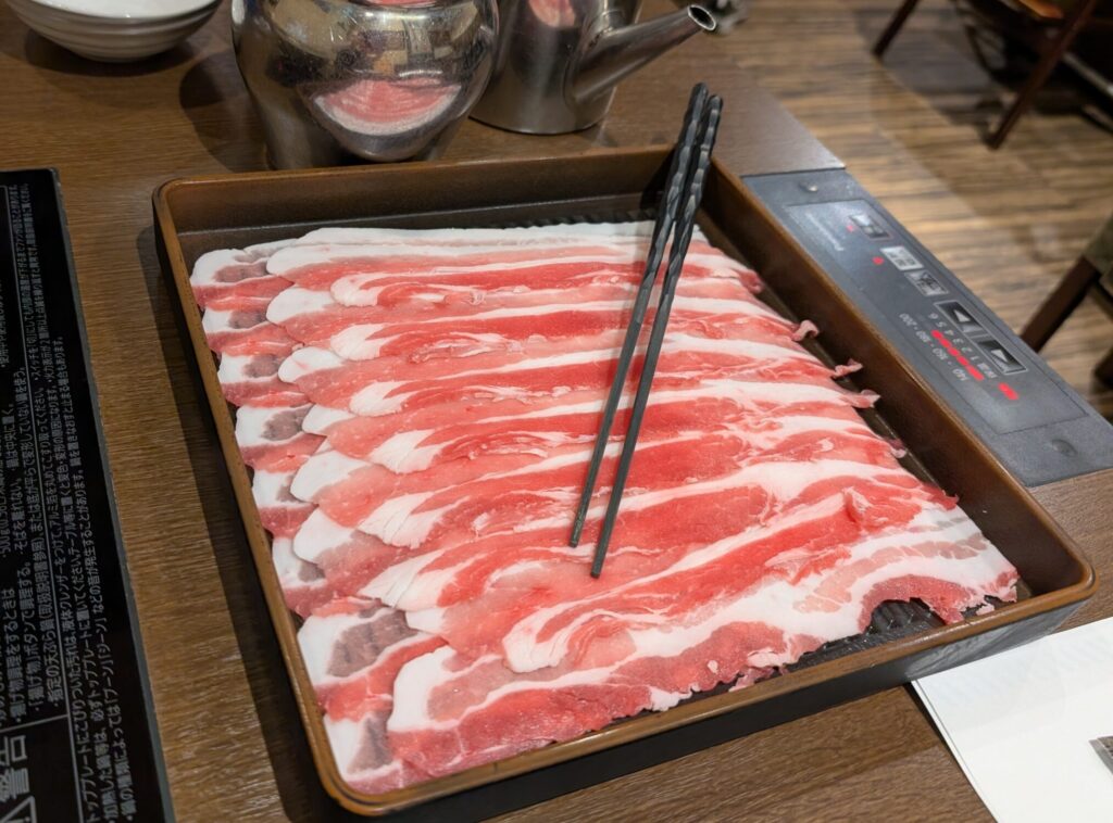 黒豚バラのしゃぶ肉は、1枚ずつ丁寧に並べられていて見た目も美しい一皿。