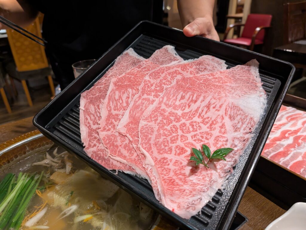 A5ランク黒毛和牛のしゃぶしゃぶは、思わず声が出るほどの大きさ。