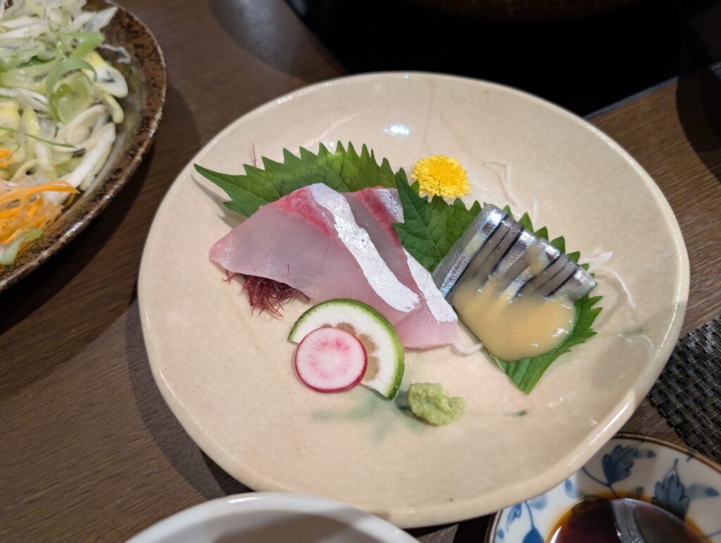 刺身盛りは、この日はカンパチとキビナゴ。鮮度の良さが伝わる安心感のある美味しさでした。
