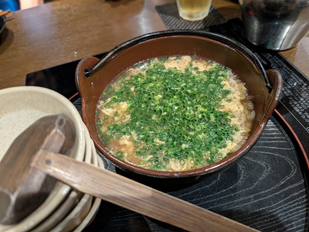 締めは雑炊。出汁の旨みと具材の旨みが凝縮された、最後にふさわしい満足感のある一杯でした。