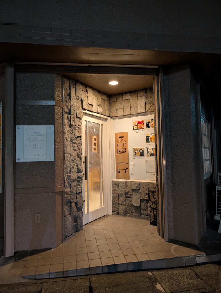 「あげ屋一代」は、いづろ通りのすぐ裏手という便利な立地で、軽やかで丁寧に揚げられた天ぷらをリーズナブルに楽しめる一軒。