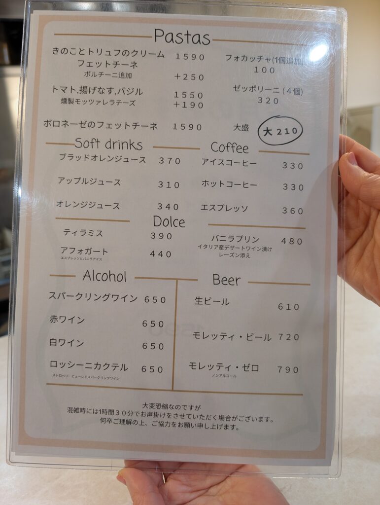 ランチメニューはパスタのみですが、ポタージュとフォカッチャがセットになっています。