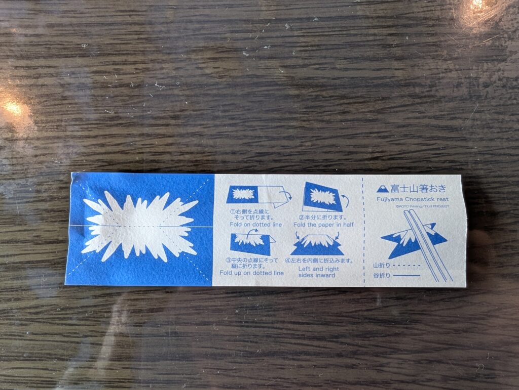 また、箸袋に可愛い箸置きの折り方が書いてあったりとちょっとした遊び心もあって、自然とお店への親しみが増しました。