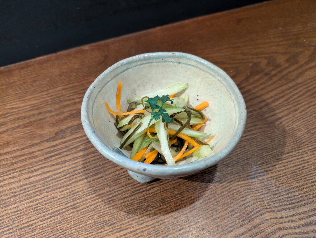 細切りのセロリに人参や昆布が加わり、塩味だけでなく昆布の旨味もしっかり感じられます。さっぱりしていて、箸が自然と進む一品です。