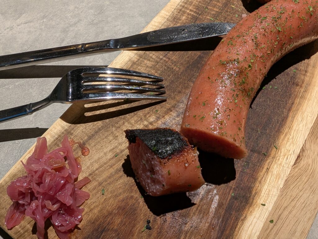 さらに、花の木ポークのフランクフルト オリーブ蒸しは、プリッとした食感とジューシーな肉の旨みが印象的。