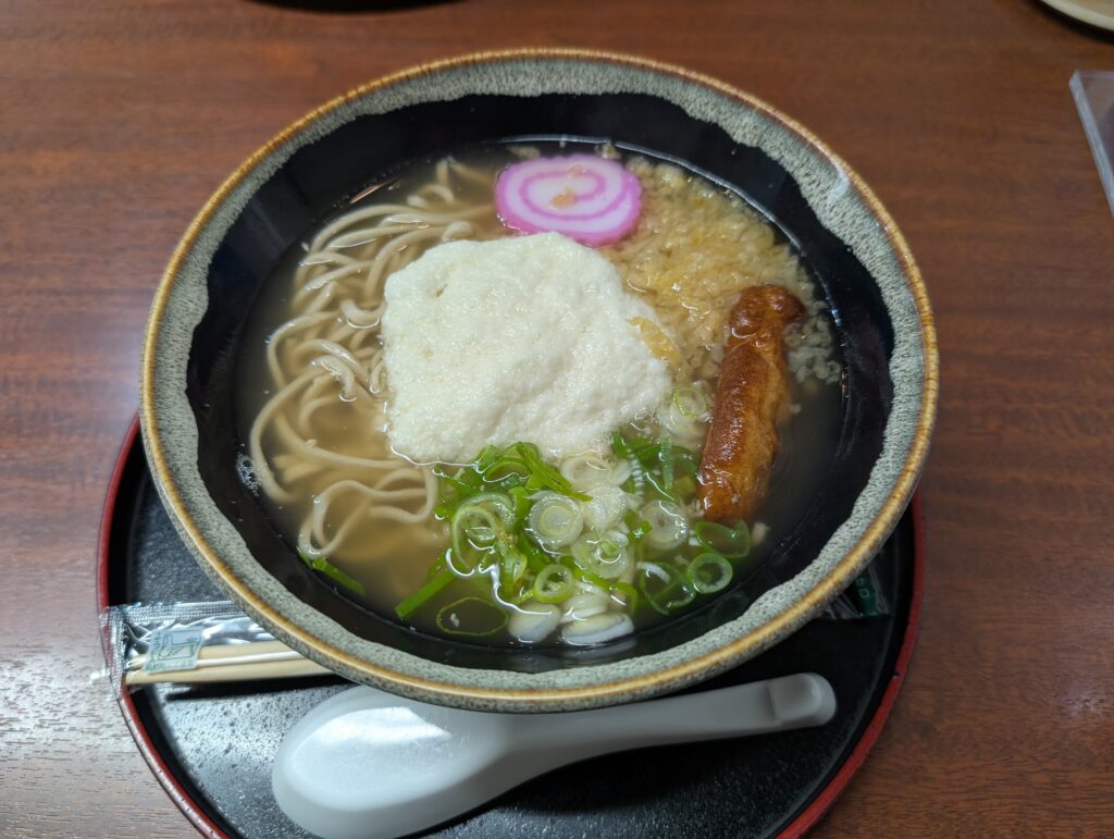 山掛け蕎麦は自然薯を使用しており、しっかりとした粘りが特徴。蕎麦にしっかり絡み、一口ごとに蕎麦の風味と自然薯のコクを同時に楽しめます。