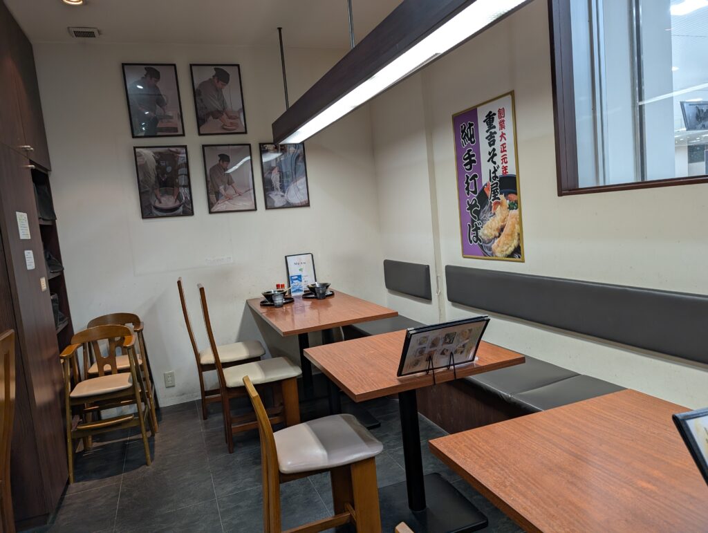 店内は昔ながらの落ち着いた雰囲気で、気取らず入りやすい店構え。カウンター席とテーブル席があり、一人でも複数人でも利用しやすく、移動の合間やちょっとした休憩にもぴったり。駅改札からすぐという立地の良さも魅力で、時間が限られている方やサクッと食事を済ませたい方に向いています。観光客はもちろん、日常使いにもおすすめのお店です。