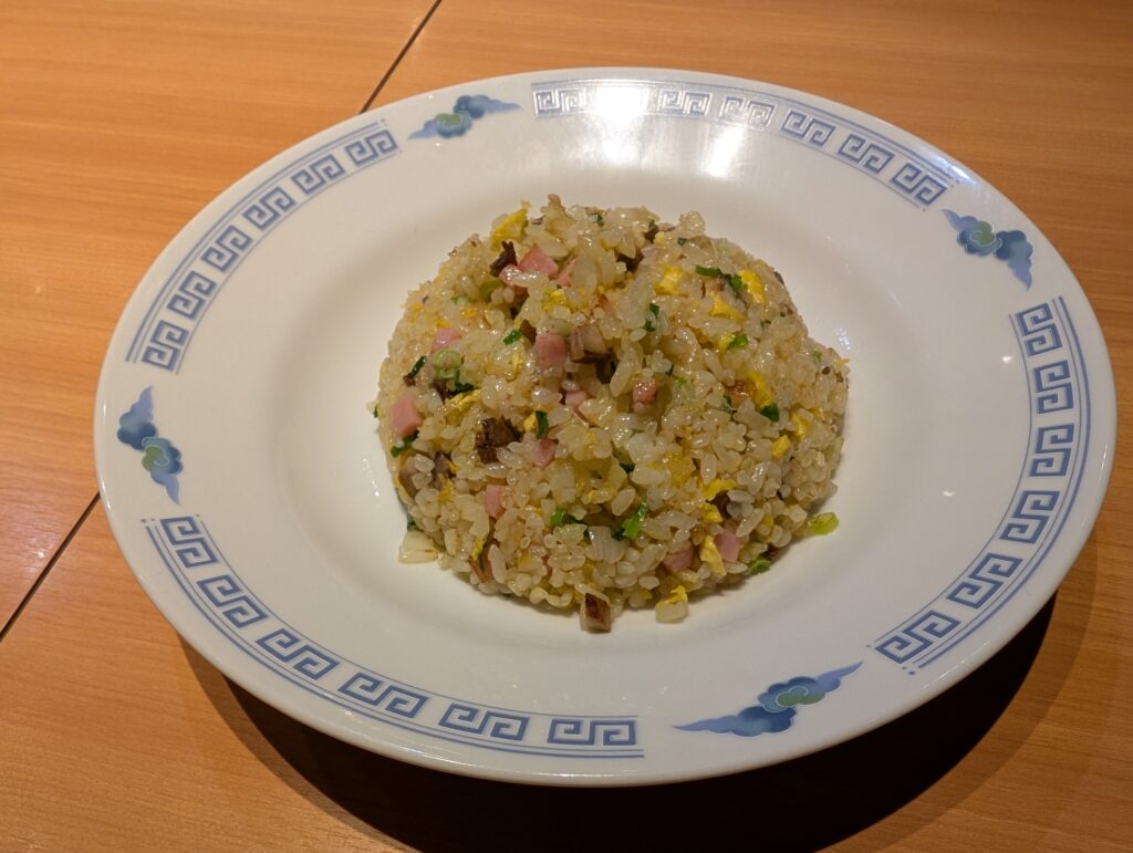 チャーハンはチャーシューやハム、卵、野菜など具材が豊富で、ひと口ごとにしっかりとした旨みを感じられます。ご飯はパラパラで油のなじみもよく、最後まで飽きずに食べ進められる一品です。