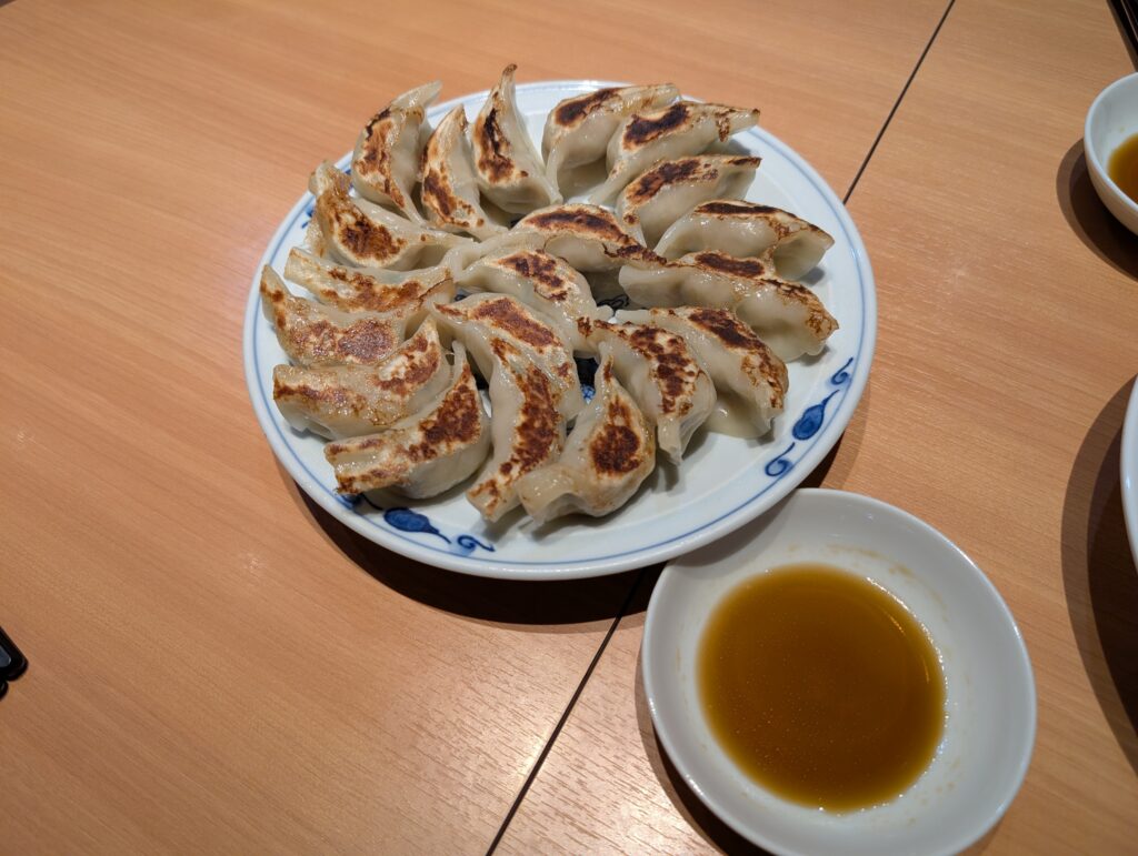 細かく刻まれた具がぎっしり詰まっており、皮はパリッとした香ばしさともっちりとした食べ応えが調和した歯ざわりで中はジューシー。野菜の甘みも感じられ、重たくなりすぎず何個でも食べられる美味しさです。